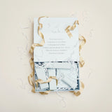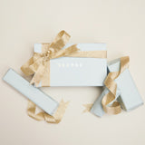 Your items will be wrapped delicately in tissue and housed in a Decree gift box, padded with recycled razzle card to keep your items safe. All finished nicely with a gold bow around the box.