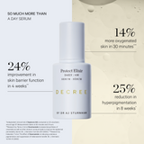 Decree’s Protect Elixir combines the benefits four serums in one. Packed full of protective antioxidants and skin boosting minerals, our definitive day serum provides your skin with the key nutrients it needs at this crucial time of day. The unique blend of highly dosed vitamins C, B and E, ascorbyl glucoside, niacinamide, copper, zinc and magnesium minerals alongside coenzyme Q10, make up the perfect protective serum to combat free radical damage and keep environmental aggressors at bay. Hydrating hyaluronic acid softens and plumps and the rose water base ensures hydration without clogging.