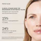 The benefit of several serums in one, Protect Elixir counteracts the collagen depleting effects of UV rays, stress and environmental pollution.